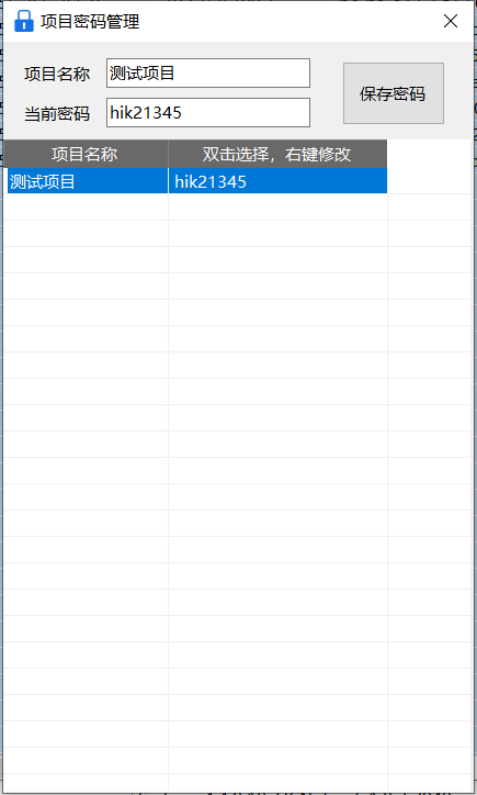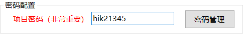 - 项目密码输入后自动加密保存在Config.xml配置文件的当前项目密码字段中。